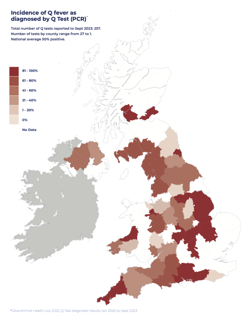 A new Q map from Ceva Animal Health highlights the incidence of Q fever in dairy herds throughout the UK based on the Q Test data.