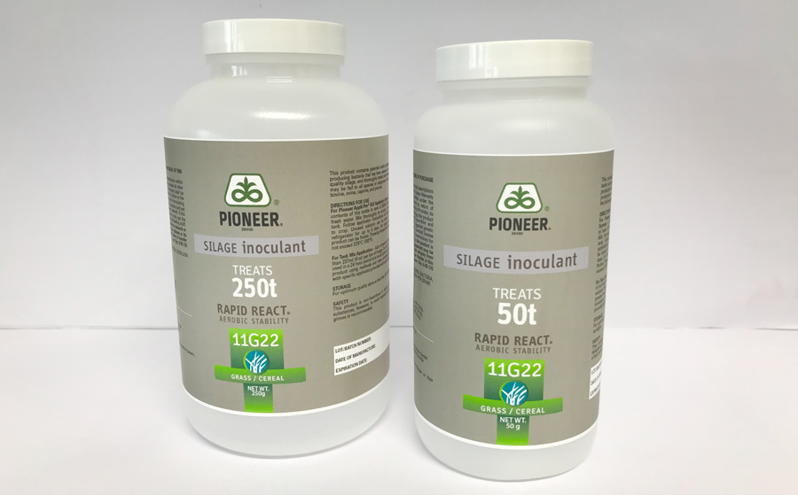 “Pioneer brand 11G22RR for grass silage, contains a combination of patented and proprietary strains of Lactobacillus buchneri and Lactobacillus plantarum, with the Rapid React strain able to produce aerobically stable silage much quicker than formulations without it.”