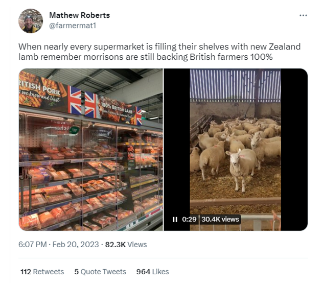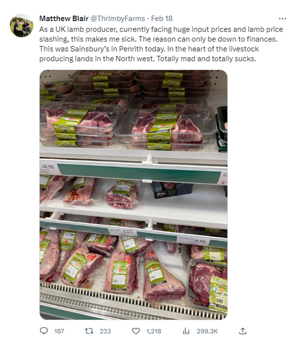 Yet others added to the noise by condemning retailers for relying on cheap import produce on social media. First generation tenant farmer Matthew Blair, farming beef and sheep at Thrimby, Cumbria, wrote on Twitter: