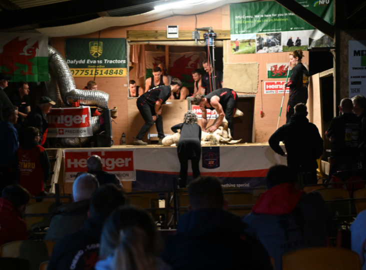 The first sheep was shorn at 5am at Hendreseifion Farm and the last sheep at 5pm, with 791 sheep being sheared in nine hours spread across five shearing runs.