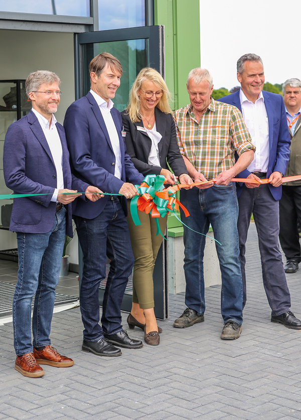 Cutting the ribbon for the official opening of Orchard Farm (l-r) Justus Dreyer; Christian Dreyer; Bettina Dreyer; Simon Brown and Amazone group sales director Andreas Hemeyer.