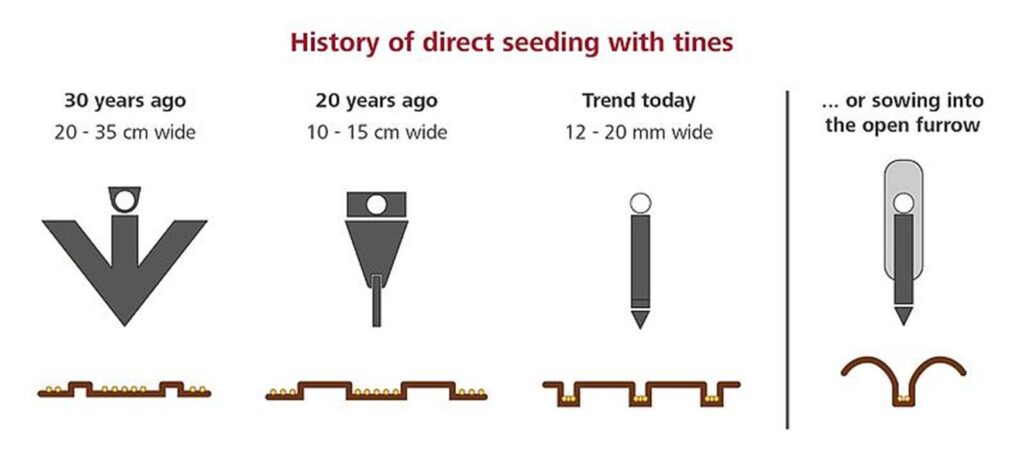 Tine technology is used, for example, in regions where farmers want to sow immediately after the harvest in fresh residues of the previous crop, such as rape or catch crops. The seed tine has a clearing character and leaves a clean seed furrow for a good soil contact of the seed.