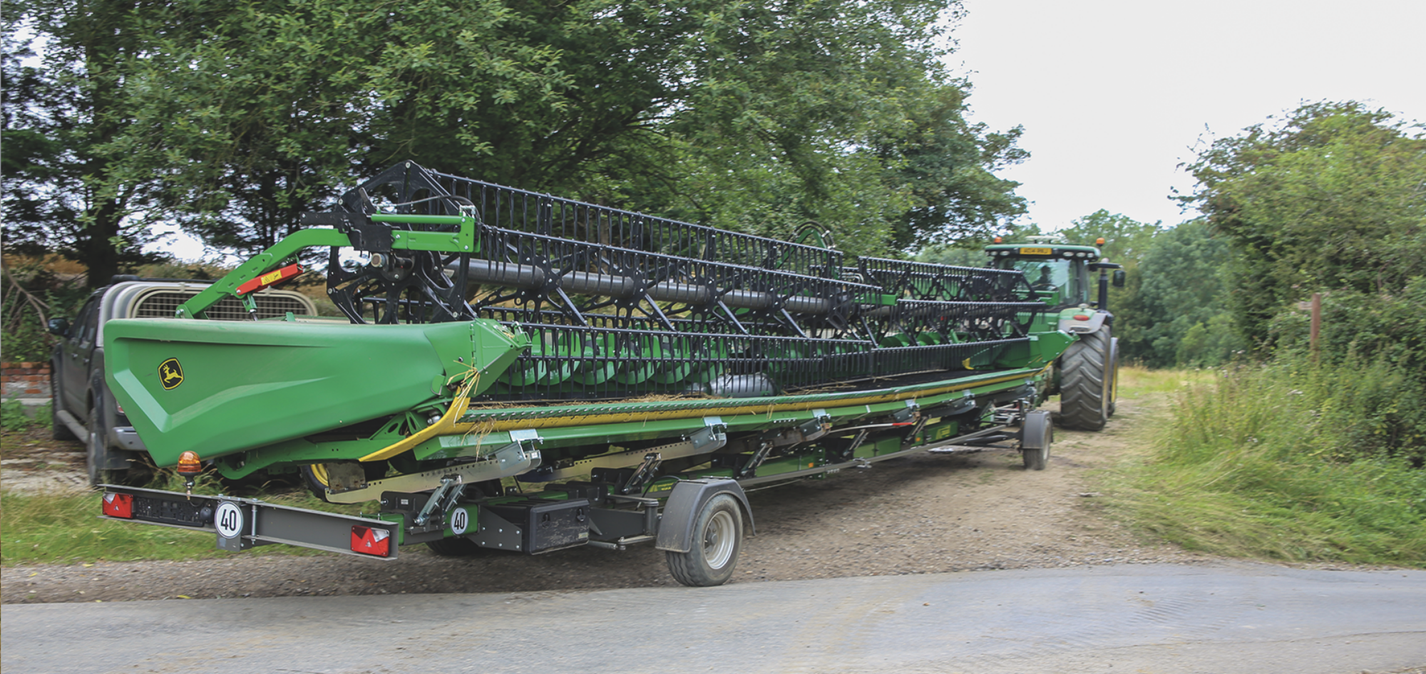 A Ziegler header trailer was purchased from importer Abrey Agricultural. Four-wheel steering means it accurately follows the wheel tracks of the towing vehicle and James Nott commented that it allows narrow gateways to be negotiated with ease.