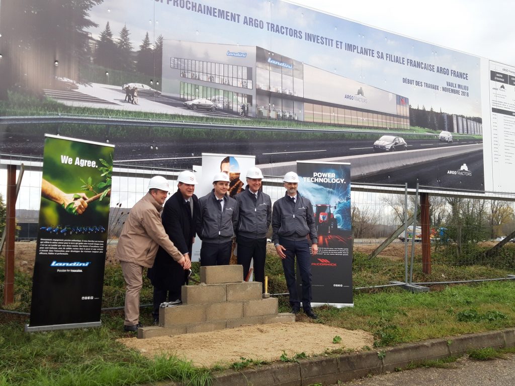 Construction got underway when the first corner stones were laid for the new Argo France base at Vaulx-Milieu to support the distribution of Argo’s Landini and McCormick tractors in the country.