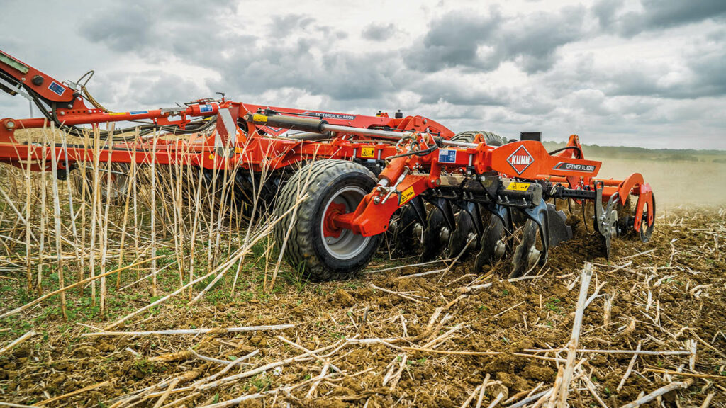 The Optimer XL line-up includes models to suit tractors from 90–600hp, and the cultivators will improve residue management including maize stalks and green cover crops, and are available with five different rear packer options. Smaller models can also have the Kuhn SH600 seeder with a 600-litre hopper added; allowing cover crops or cereals to be placed during cultivations in a single pass.