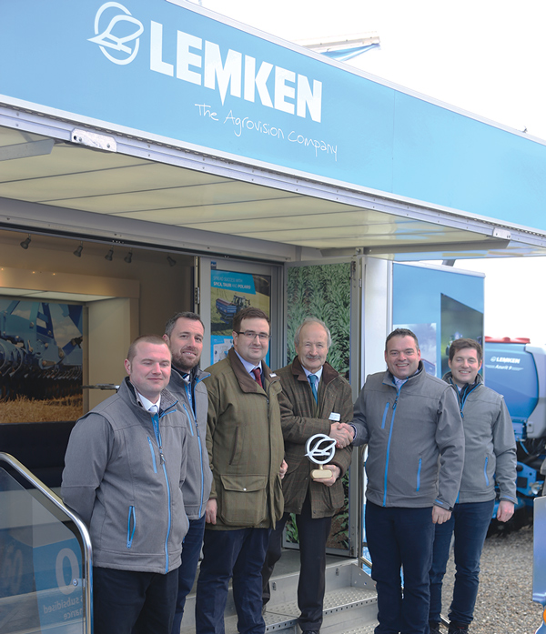Previous and current Ernest Doe & Sons managing directors Colin and Angus Doe are pictured receiving a special award from Lemken in recognition of the companies’ close cooperation for more than 60 years of trading, during which Lemken has exhibited at every Doe Show.