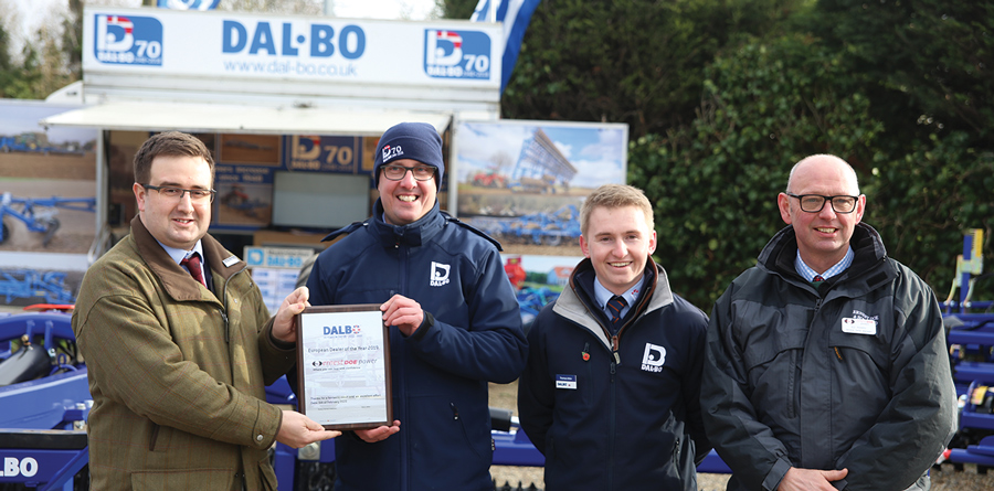 Ernest Doe Power received the European Dealer of the Year award from Dal-Bo. (l-r) Ernest Doe & Sons managing director Angus Doe, Dal-Bo group sales manager Torben Pedersen, area sales manager Thomas Atkin and Ernest Doe Power sales manager Ed Perry.