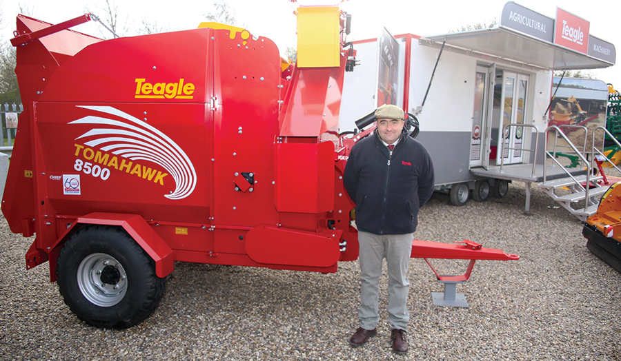 Teagle displayed a Tomahawk 8500 Chief straw spreader, which area sales representative David Threadgold (pictured) explained is one of the company’s most popular products supplied to the dealer’s customers. The machine on the stand was sold and David said that a dual chop version is also proving popular – offering a finer chop down to two inches for cubical bedding, and to save time needed for TMR mixing