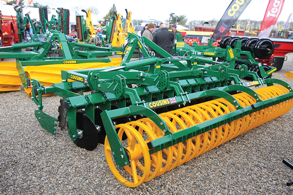 East Anglia-based Cousins of Emneth displayed its new Top Disc high-speed compact disc-harrow featuring 510mm rubber-mounted discs, and available in linkage-mounted 3.0 and 4.0m, and trailed 4.0, 4.6 and 6.0m versions. A new open channel rear packer with 600mm u-profile rings spaced at 150mm uses soil-to-soil contact and razor rings are an option.