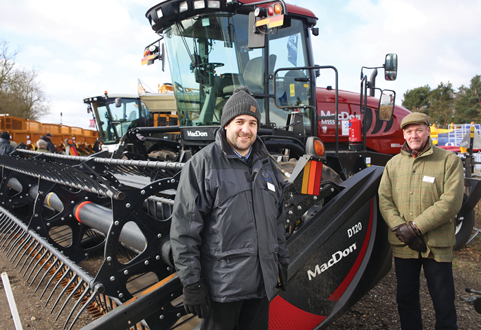 MacDon combine headers have proved popular with the dealer’s customers for fitting to Case IH and New Holland combines as well as other brands. This year, for the first time, a MacDon self-propelled swather was also displayed – one of two supplied to customers by Ernest Doe last year. “There is increasing interest from potential customers for a wide range of crops and we took orders for two more machines during the show.” explained area sales manager for the Ernest Doe Braintree depot, Mark Jolley. “Interest is no longer just for oilseed rape, and other enquiries concerned alfalfa, borage and buckwheat. With the potential ban on using glyphosate as a chemical desiccant, increased cutting and swathing is expected.” The MacDon swather is available in 15–40ft working widths. With Mark (left) is MacDon representative Paul Pickford.