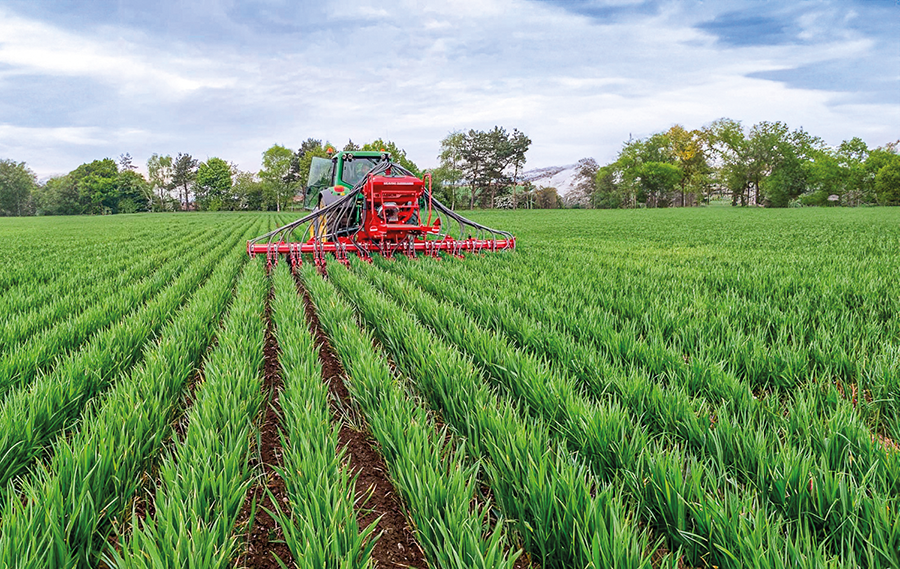 Seeds are placed at consistent depth by a double-disc coulter and press wheel. The seeding system is simple and effective, and suitable for direct drilling as well as operating in min-till establishment regimes. Hydraulic side-shift and adaptable row spacing allows use with different tractor wheel spacings and crops. The Accord metering system can be used for fine and coarse grains drilled at rates from 1.8–400kg/ha, and the hydraulic-driven distribution fan has a low power demand.