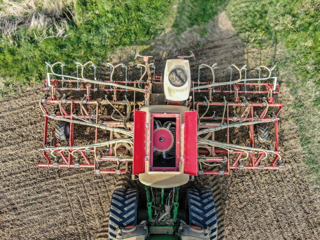 The Weaving Sabre drill uses Weaving’s proven tine design, but an extra row of tines allows wider spacing and more room for trash than previous versions.