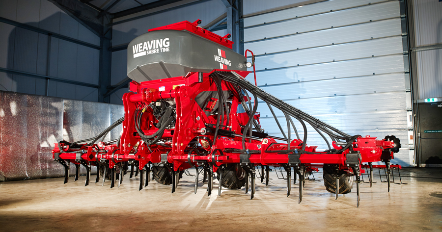 Weaving’s Sabre drill comes in 3.0, 4.8 and 6.0m working widths, with four rows of tungsten-tipped, wide-spaced 12mm tines. Seed is delivered through stainless steel tubes to establish crops successfully even in challenging wet and high trash working conditions.