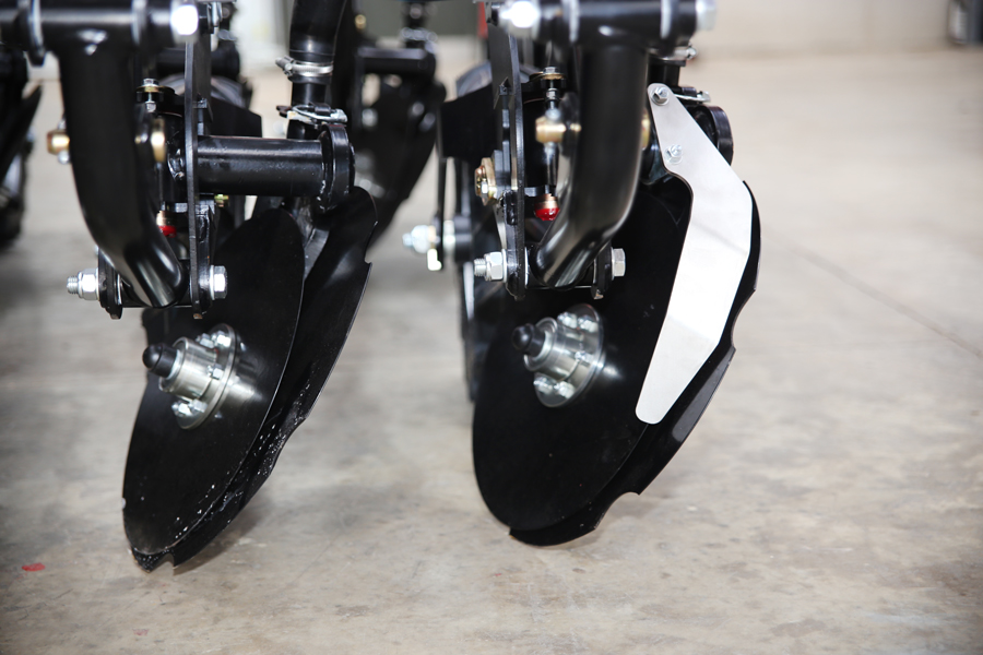 New clod guards protect the disc coulters from becoming blocked by clods and large stones.
