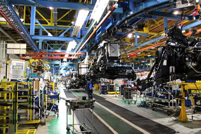 RFID tags are used to monitor the circa 3,500 boxes of parts that move around the line every shift to help with accountability and traceability. Further improvements to the production line are being made all the time, and within the last two years there has been a new bonnet and cab manipulator added, as well as new robotic painting and monolaser paint facility.