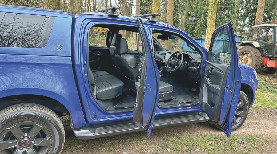 Access to the rear of the cab is good with 56cm clearance when the doors are fully opened. The rear bench seat splits 30/70 and each section lifts to reveal concealed storage beneath.