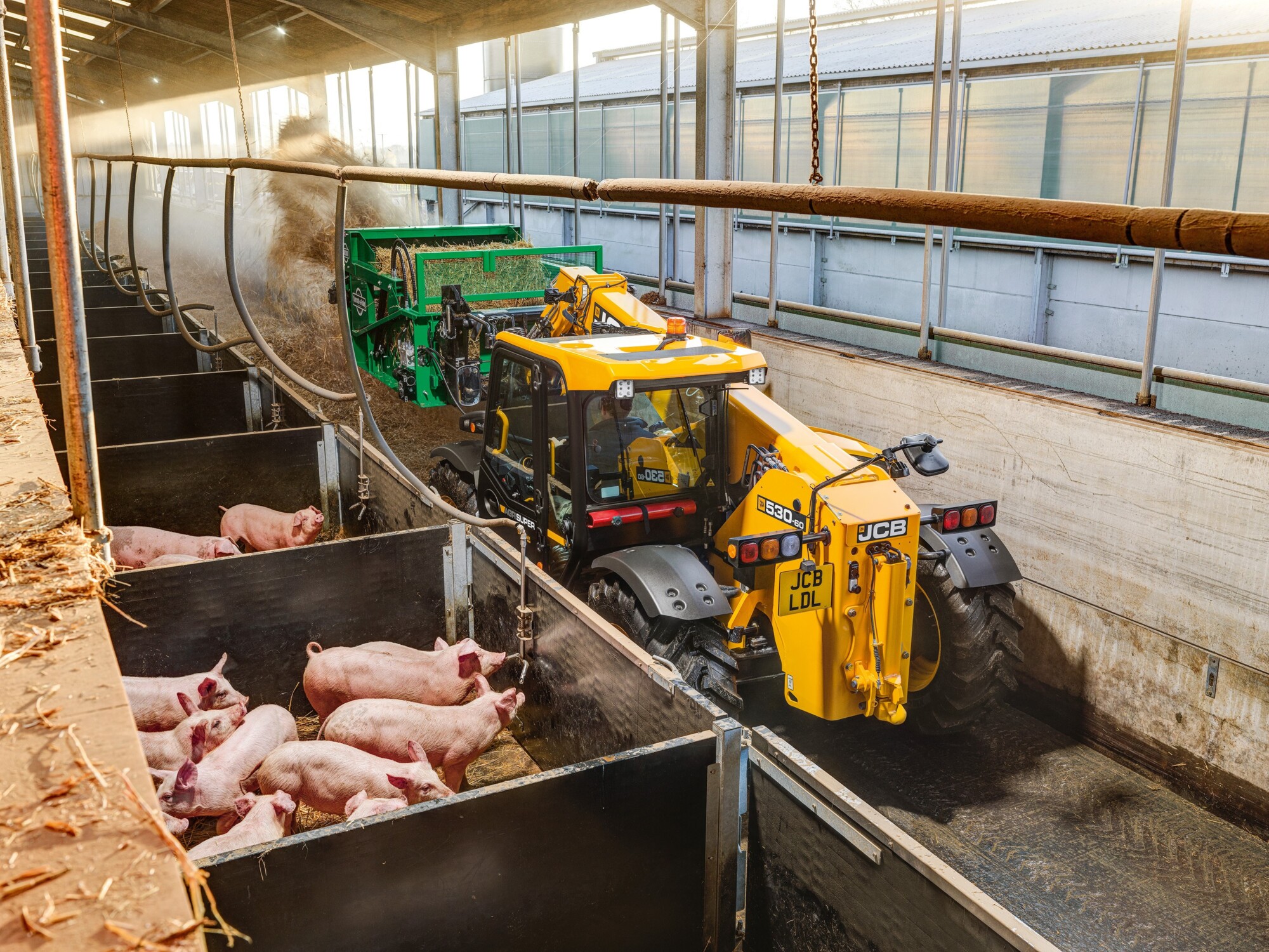 The JCB Loadall 530-60 AGRI Super is ideally sized to match the needs of livestock farms with narrow aisles and passages, and caters for the needs of pig and poultry units in particular by combining high levels of power and traction with compact dimensions for productive performance, especially when working inside buildings with restricted height.