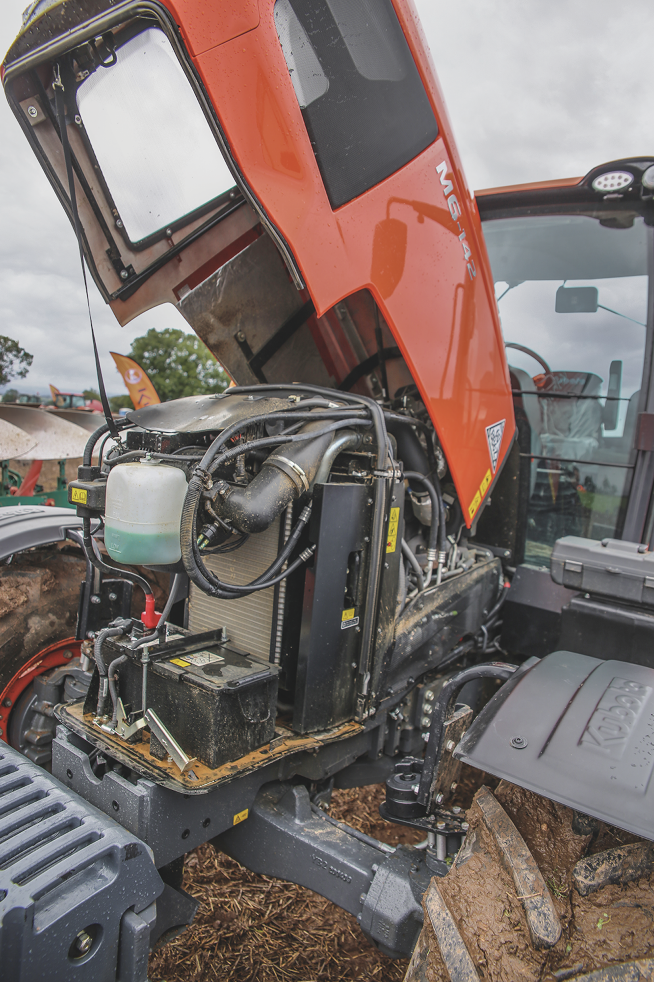 The new rear axle is much larger than that of the MG-X series to cope with greater loads, and a Cat 3 rear linkage with 7.0t lift capacity is standard. Four PTO speeds – 540, 540-Eco, 1,000 and 1,000-Eco are provided at the rear. An optional front linkage with 3.26t capacity is an option not previously available on this size tractor from Kubota, and a front PTO is also available.