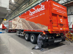 The 72m3 trailers started arriving towards the end of 2022, making the short journey from Fruehauf’s base in Grantham to the nearby Lincolnshire firm. Further new tippers are due for delivery every month through to July, joining a mixed fleet of vehicles aiding Openfield’s 2023 growth ambitions.