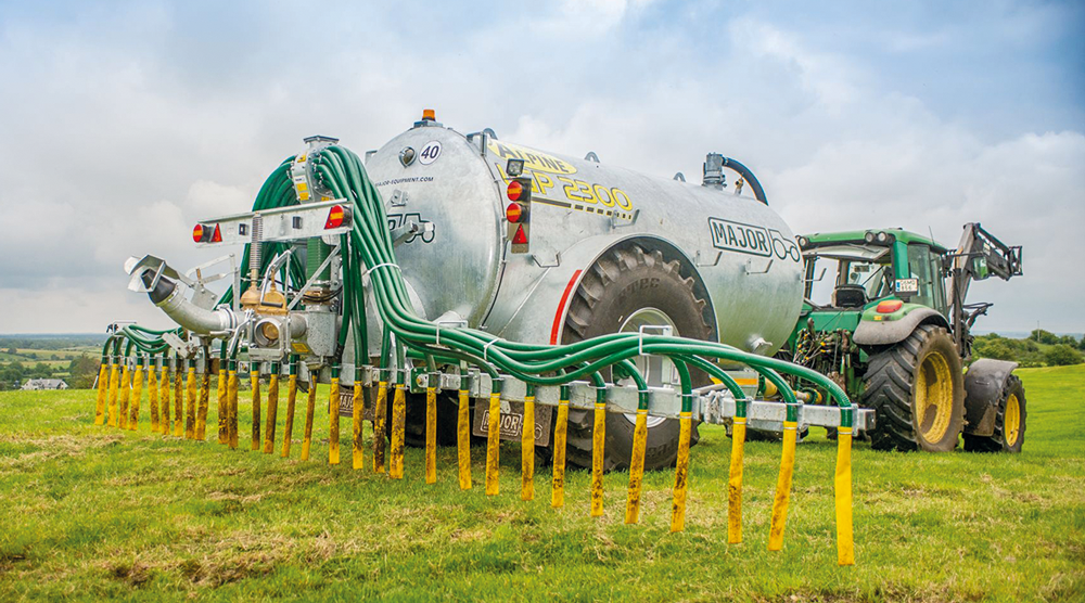 A Major Equipment Alpine series slurry tanker working with the recently updated Major dribble bar attachment.