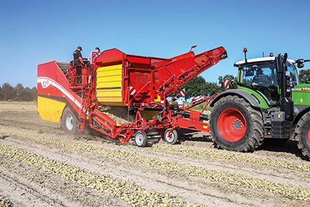Grimme recommends tractors of 220–250hp to operate the harvester and power the fans, although the requirement varies according to the terrain and ground conditions.