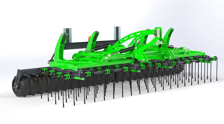 Fentech Agri has equipped it with J.J. Metcalfe & Son Ltd’s NG system for precise depth control and minimal surface disturbance. Its front straight disc cracks hard crusts and minimises clod formation in dry conditions.