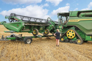 James Nott says the Ziegler 4WT trailer is well made and makes it easy to move his 45ft John Deere header between harvesting locations.