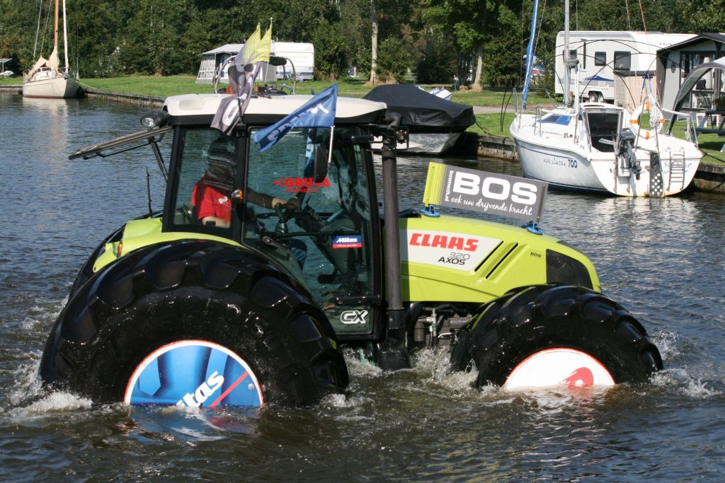 Mitas high-horsepower tyres helped a Claas Axos 320 tractor weighing 4 tons to ‘walk’ on water. Without the massive flotation tyres the tractor would inevitably sink. But thanks to careful calculation and Archimedes’ principle the tractor successfully navigated the port and then returned to dry land without the captain getting his feet wet. Mitas, part of Trelleborg Group, and its partners carried out the unusual stunt in Netherlands this month. One of the world’s largest agricultural tyres, Mitas1250/50 R 32 SFT, was fitted on the rear axle and Mitas 750/55 R 30 SFT on the front axle of the floating Claas tractor.
