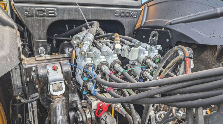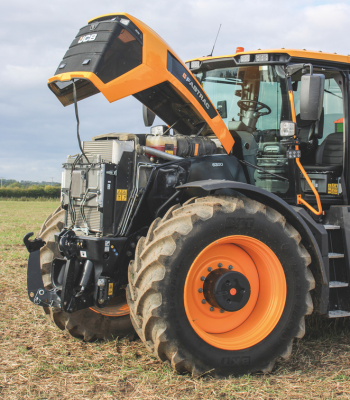 The 6000 also introduces a fully integrated central tyre inflation system (CTIS) – the first time JCB has fitted one to a tractor. Twin compressors supply 600 litres/min of air, routed through single lines within the axles. This avoids external pipework, reducing the risk of damage from hedges or gateposts.
