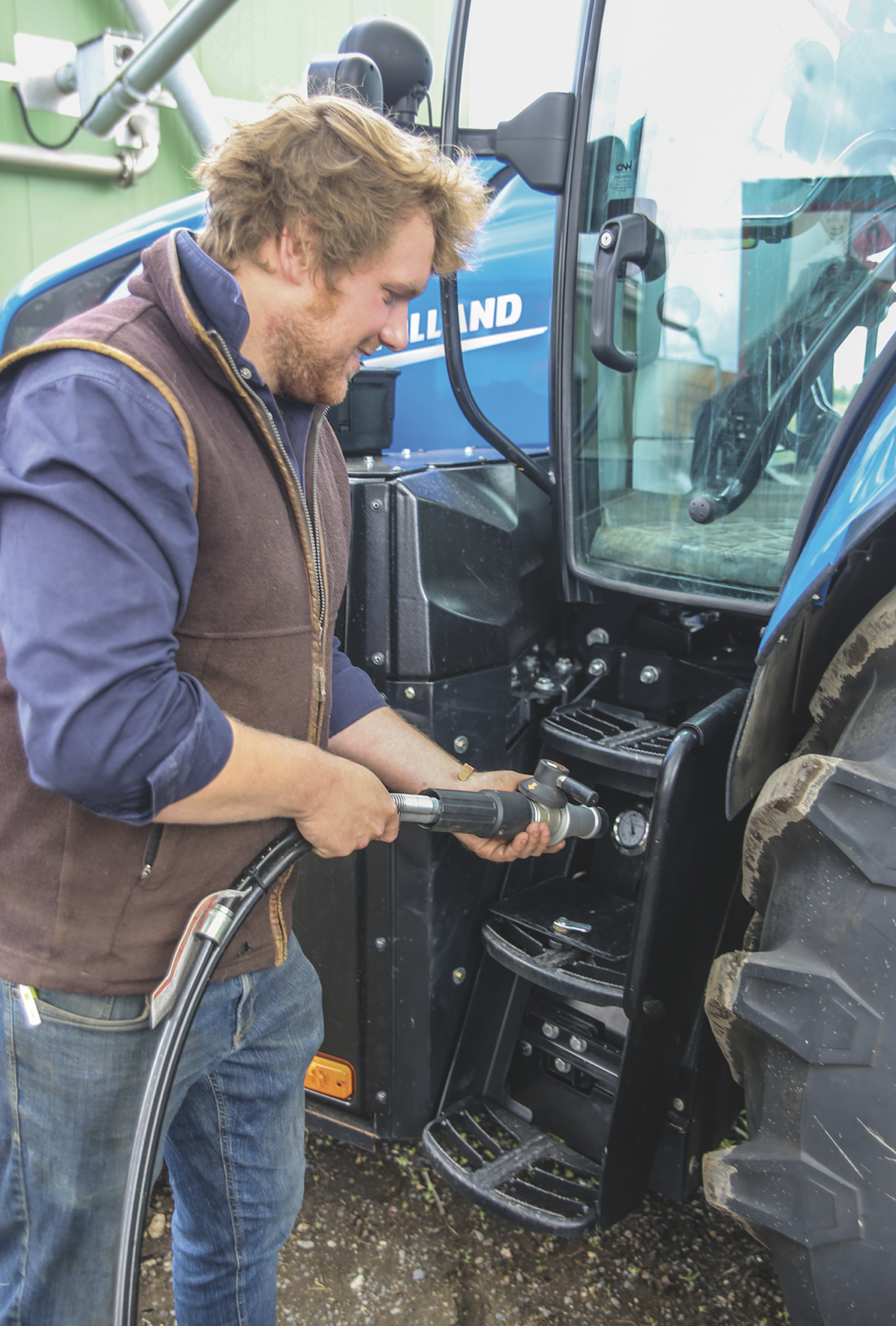 After trialling the gas tractor, Ben is convinced of its suitability for farm work. “It’s been very useful having the opportunity to try the methane tractor before committing to the investment. We are impressed by its performance and the running time for most tasks between refuelling,” he confirmed. “We couldn’t replace all of our diesel tractors currently as for heavy field work when the tractor is away from the yard all day then a conventional diesel model remains more suitable. For subsoiling, or ploughing with our 6f reversible, then our larger T7 tractors are better on our heavy land. But for lighter work such as grass raking or tedding, or for fertiliser applications and spraying then the methane- powered tractor is practical and offers adequate working times between refuelling. It’s better for the environment and cheaper to run than a diesel alternative too, even when buying in the methane as we do currently. Ideal applications include yard work, and those involving frequent travel back to the yard which provide opportunities to refuel without making extra journeys.”