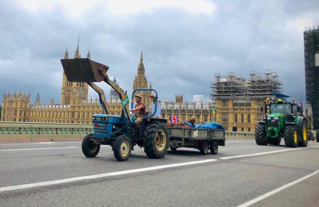 Volunteer activists including Celebrity MasterChef winner Emma Kennedy, invited farmers to drive their tractors around Parliament Square on Wednesday (8th July).