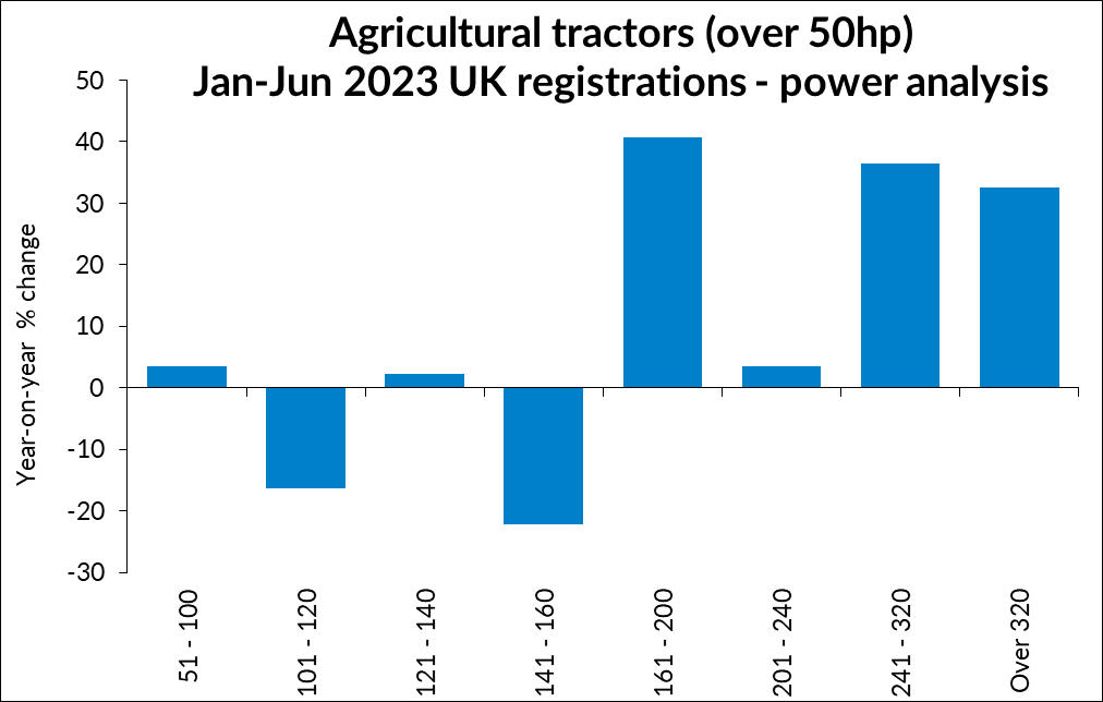 In terms of power, the greatest increase was seen in machines of over 160hp, with registrations up by more than a quarter on the previous year. In contrast, the number of machines below this range was 11% lower than in January to June 2022.