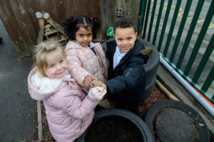 Colleagues from Branston Ltd have been helping pupils at Bracebridge Nursery and Infant School plant potatoes as part of the Grow your own Potatoes project. Picture: Chris Vaughan Photography Ltd for Branston Ltd