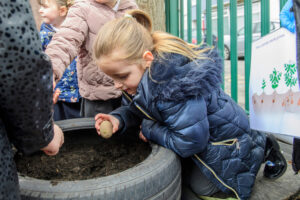 Two varieties of potato – Casablanca and Shannon – were provided to the schools. Children started by chitting their seeds, allowing them to develop sprouts. Armed with resources provided by the Grow Your Own Potatoes programme they’ll be able to track the progress of the spuds with the aim of harvesting them on 13th June.