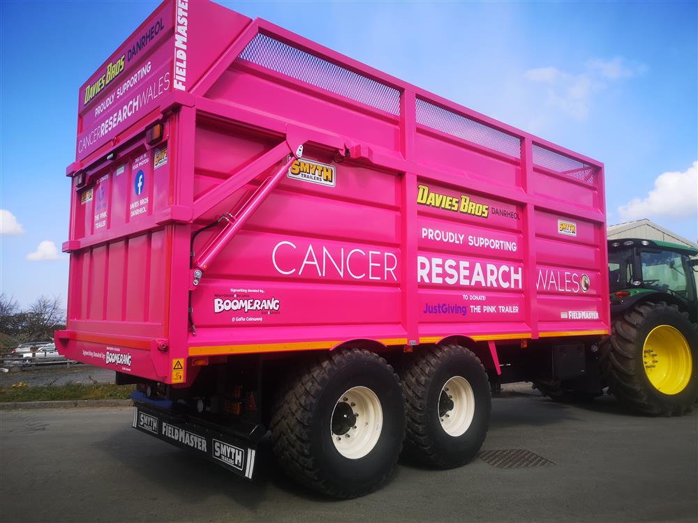 Davies Bros Danrheol in St Clears, run by Lyn and Huw Davie, has raised more than £7,000 for charity after deciding to invest in a pink silage trailer this year.