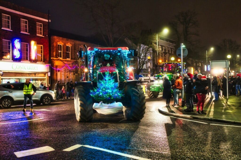 A total of 102 festively-decorated tractors and farm vehicles – representing nearly every farm in Hertfordshire and Bedfordshire – took part in the 7.5-mile Farmers on Christmas Lights Tour through Baldock, Letchworth and Hitchin on Saturday (18th December).