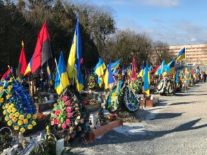 The volunteers visited the graves of fallen soldiers in Lviv.