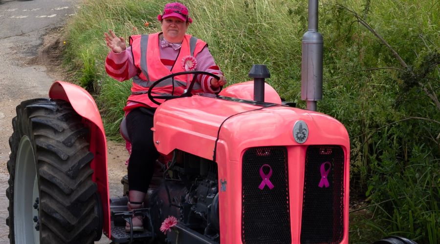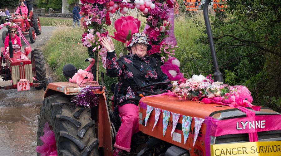 In honour of the occasion, participants and their tractors were dressed and decorated in pink, with some paying tribute to cancer survivors, or those they had lost to the disease.