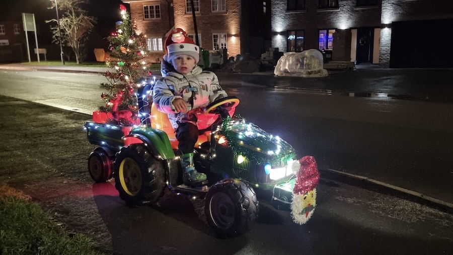 Luke Fairbrother won the Best Decorated Tractor in a Massey Ferguson and was given a Christmas hamper as a reward.