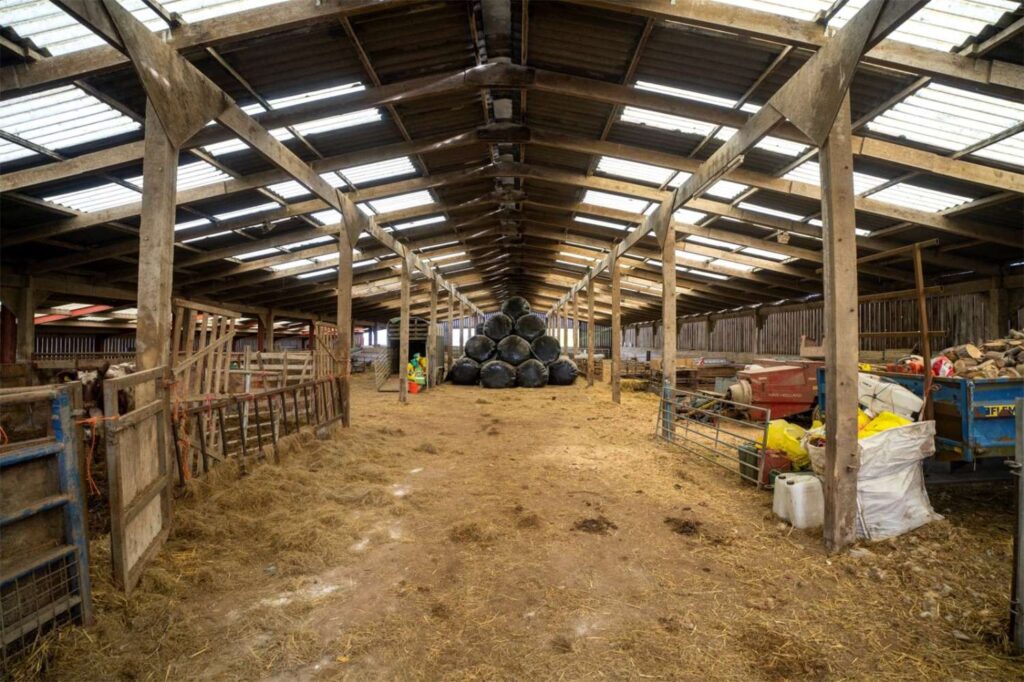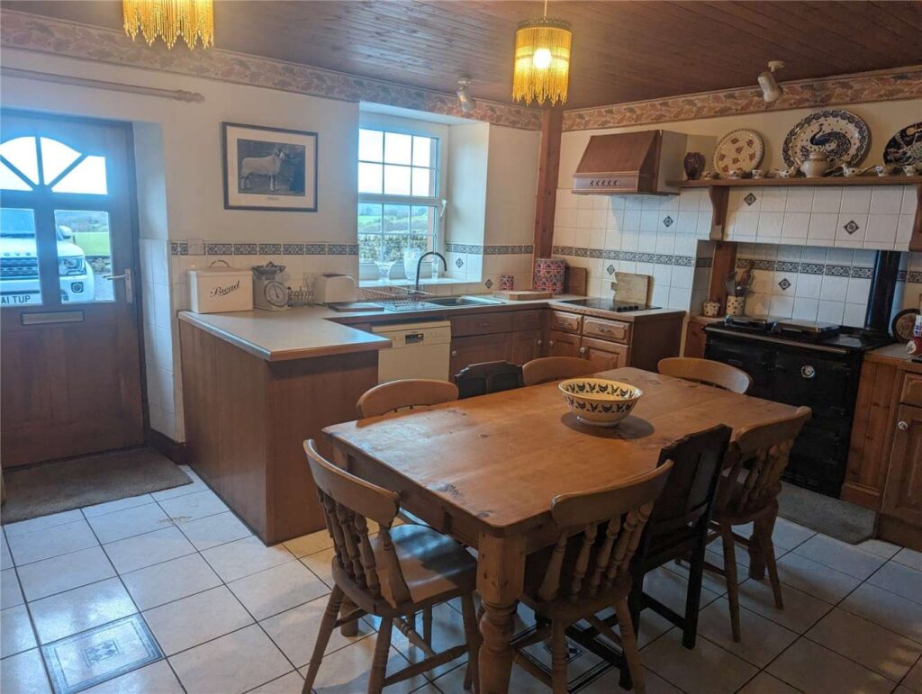 A range of modern farm buildings providing stock and crop housing are located to the rear of the farm. The land comprises good-quality mowing and grazing land as well as mature native woodland.
