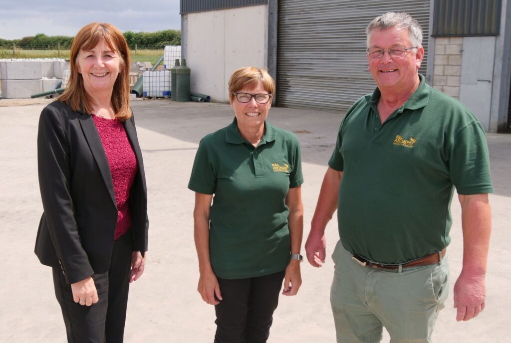 Rural affairs minister Lesley Griffiths (left) visited Richard and Lyn Anthony of Sealands Farm.
