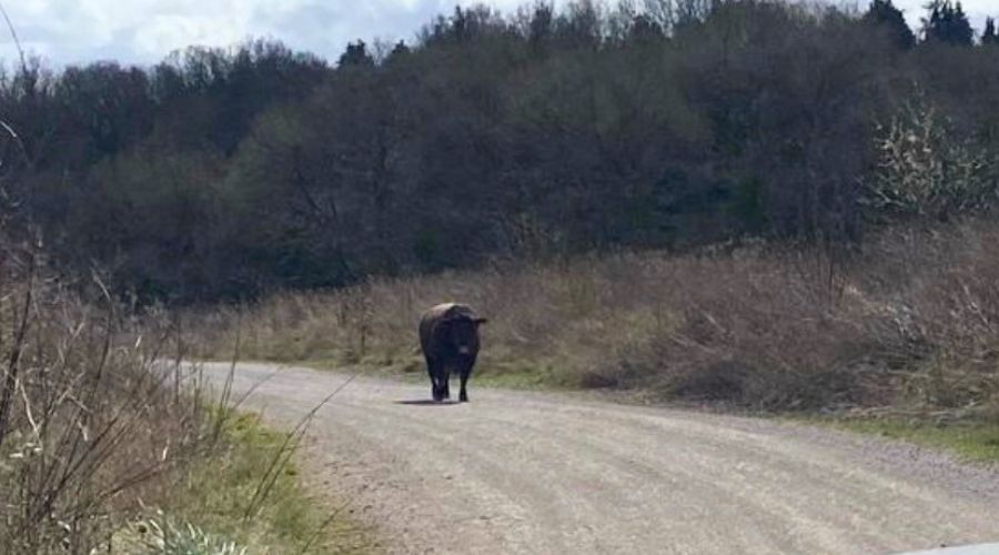 The Amesbury Police officers attended an incident that saw a bull walking along a road in the Wiltshire area.
