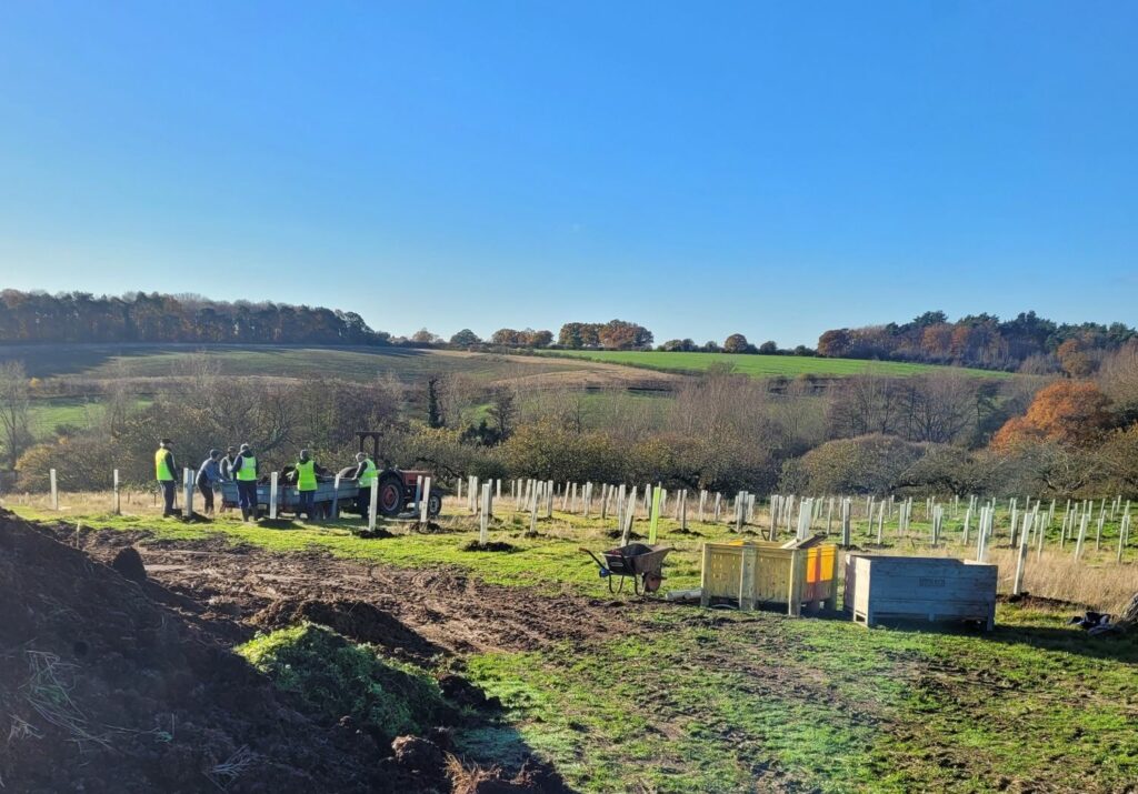 Volunteers mulch new trees as part of a project funded by the Farming in Protected Landscapes grant scheme.