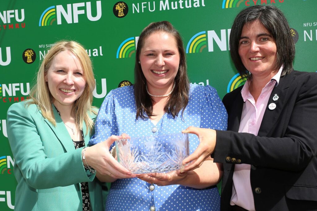 To mark her achievement, she was presented with a Welsh crystal engraved bowl and £500 prize money. The award, which is sponsored by NFU Cymru and NFU Mutual, champions the contribution that women make to agriculture and seeks to raise the profile of women in farming.
