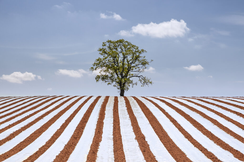 © Josh Cooper. While travelling from Wales to Worcester to visit his father, Josh noticed this field in Leominster and spoke to the farmer who explained that the plastic sheeting is used to protect the young crop. As the day warmed, condensation formed under the sheeting, creating the striped effect.