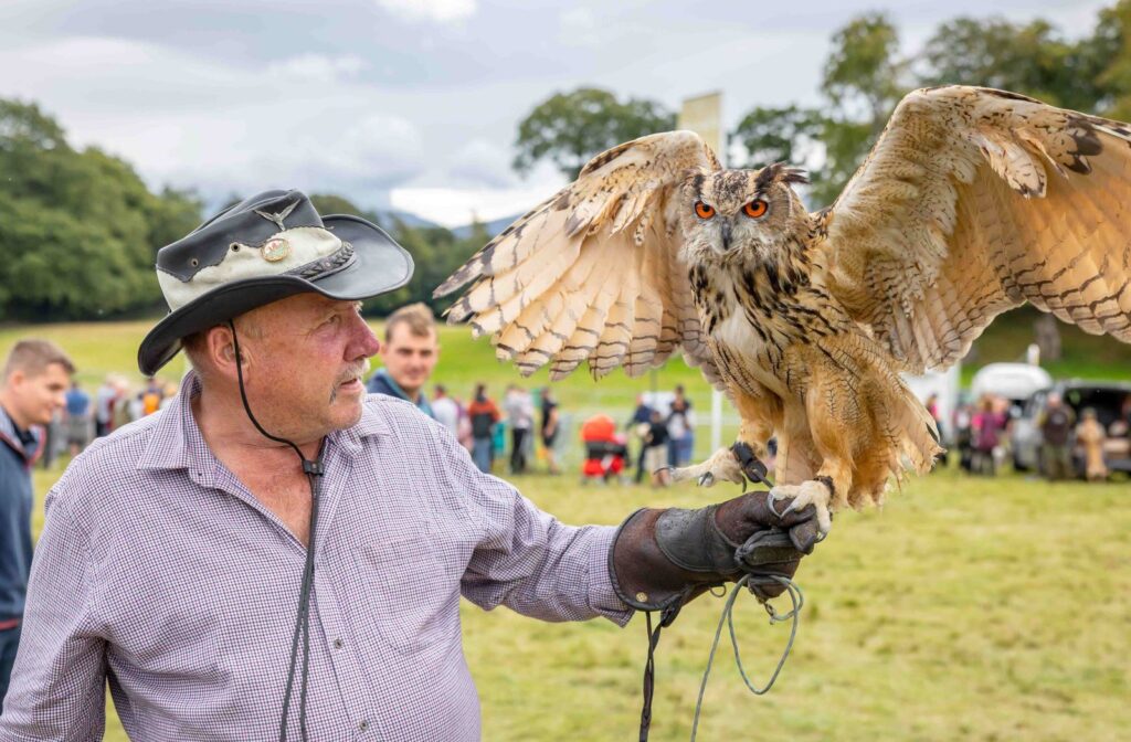 John Islwyn Jones from Pen y Bryn Falconry performing at last year’s Welsh Game Fair.