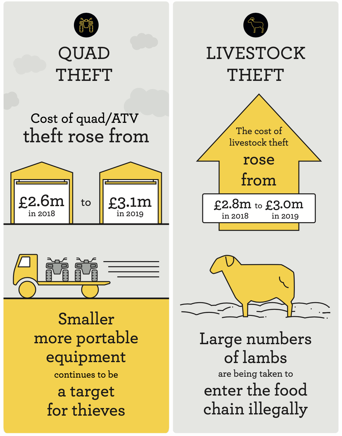 • The cost of Quad and ATV theft claims to NFU Mutual rose to £3.1m in 2019 – a rise of 21%
