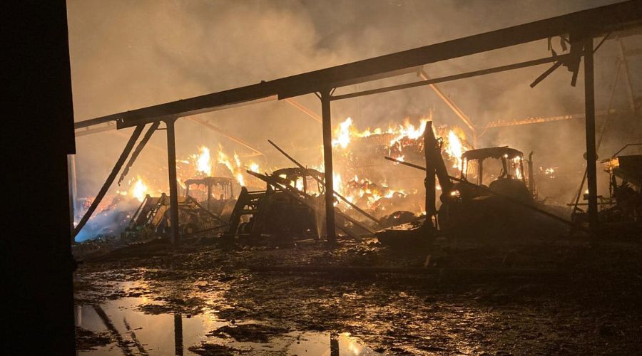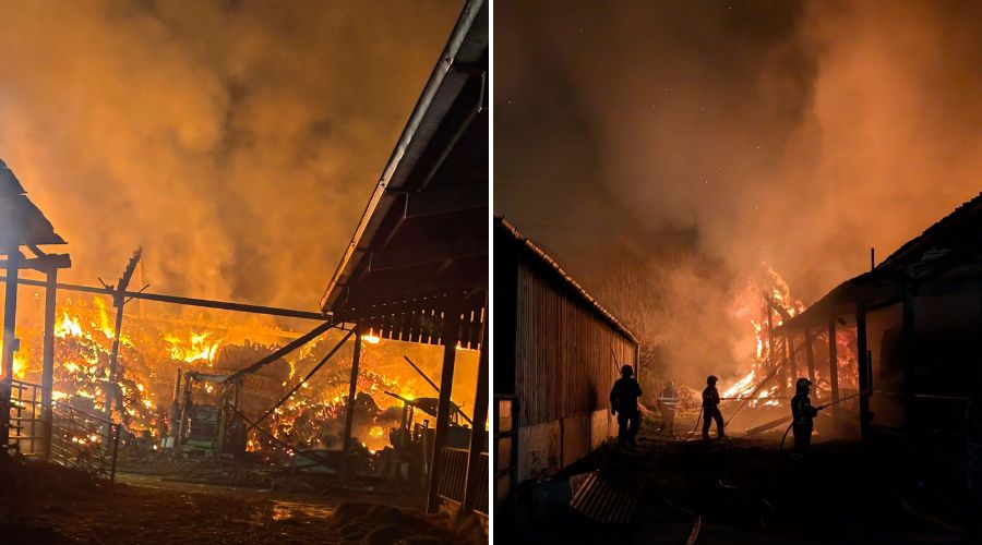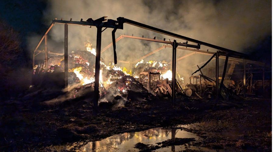 More than 500 bales of hay that were stored in the affected barns have been destroyed.