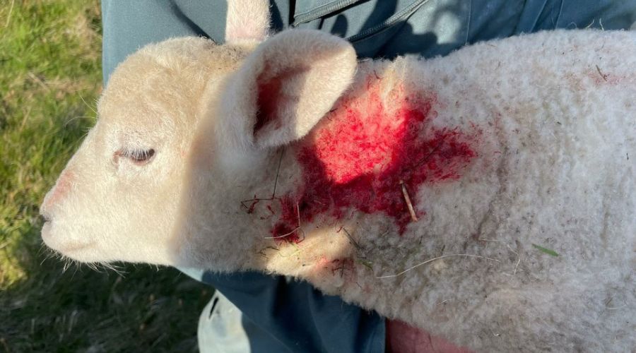 The five-week-old lamb suffered significant injuries as a result of the attack.