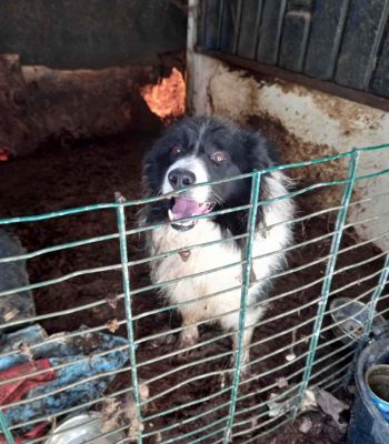 The area in which the dog was being kept was approximately two by three metres and thick with accumulated faeces, leaving no dry place for the dog to lie. Two empty bowls were found beside the dog, suggesting it had been without food and water for some time.